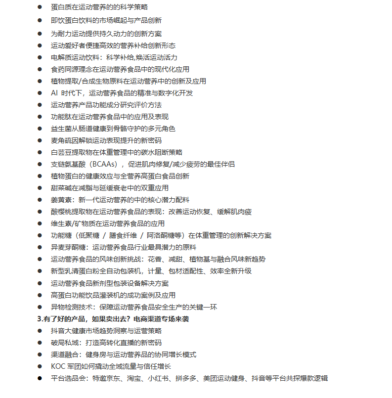 第三届运动、营养食品技术及应用创新大会 - 演讲主题